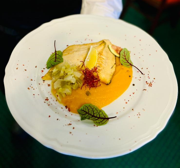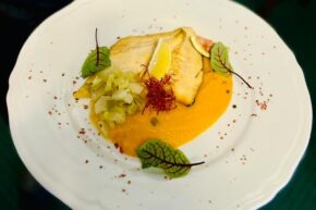 Smażony filet z piotrosza z konfiturą z fenkuła i puree ziemniaczanym z truflą – 69